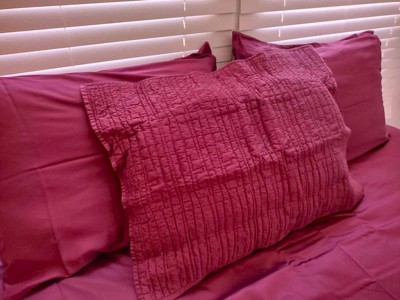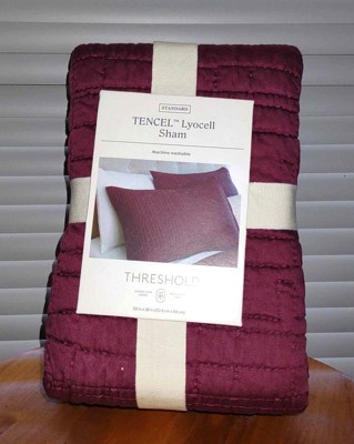 I really love my Threshold Wine Red Tencel Quilt Sham. The deep red wine color matched my bedroom decor perfectly. The quilted texture gives a different look than your standard flat pillow shams, really stands out from my other pillows. The fabric is so soft and the quilting makes it very comfy to sleep on or propping behind my back to read a book. I highly recommend this sham design.