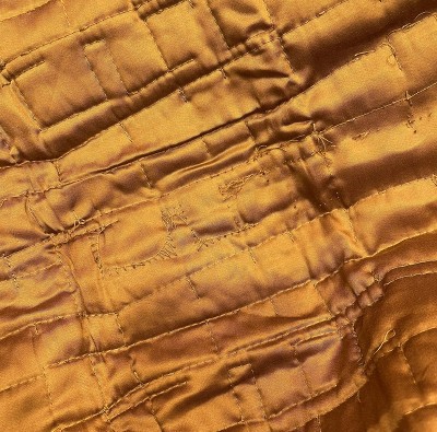 The batting is pushed through the fabric by the needle when these are stitched. The fabric is also too shiny for my tastes.