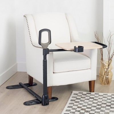 I've had this a few days but it has made a difference in my comfort level when I see my wife attempt to arise from her chair. The chair lacked a solid arm with which she could safely arise to her walker. She would struggle and appear to be on the verge of falling, only to eventually stabilize herself. She fell in June while walking with her stroller and broke her femur and had surgical correction and a prolonged recovery. The stand-n-go has been a godsend. She is able to arise without fear of toppling and I rest much easier! Easy to assemble and highly variable. Our chair was about 17" wide, but it snuggled easily into the space needed and is solid. I am a physician, retired, and am very pleased with this product and ordered the car handle support which goes in the door latch. I can't use the sling handle on my car.