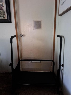 [This review was collected as part of a promotion.] This was much larger than I expected and had a weight limit of 300 pounds. It's not easy to use getting on and off the bed since I had to step over the stabilizing bar. It may work for people with larger homes that are smaller than I am, however. For me it was not useful at all.