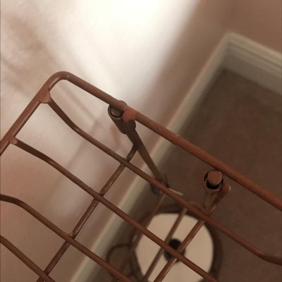 - FUNCTIONAL STORAGE: Free-standing toilet paper holder dispenses one roll of toilet paper and stores 2 extra rolls; Open holder makes grabbing a roll quick and easy; Top shelf provides additional storage space; Great when entertaining - your guests will know where to find extra rolls of toilet paper when needed; Reserve toilet tissue is always at the ready; Perfect for small bathrooms, guest bathrooms, half bathrooms and powder rooms