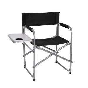 Some of us like to lounge outdoors. Others like to eat outdoors. If you're an ambitious outdoor enthusiast that wants to lounge AND eat in comfort, you want this accessorized directors chair. Padded arm rests and soft polyester backing provide comfort, and a folding side table has impressive snack-holding capacity. A built-in beverage holder completes the package.
