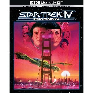On their way home to face a host of criminal charges, the former Enterprise crew learns that a mysterious space probe is threatening Earth with certain destruction. Now, Kirk and company must travel back in time to the 1980s to bring a pair of humpback whales to the 23rd century in the hopes they'll be able to communicate with the probe and save the planet. William Shatner, Leonard Nimoy (who also directed), DeForest Kelley, Catherine Hicks star. 118 min. Widescreen; Soundtracks: English Dolby TrueHD 7.1, French Dolby Digital stereo; Subtitles: English, French; audio commentary; featurettes; storyboards. Two-disc set.