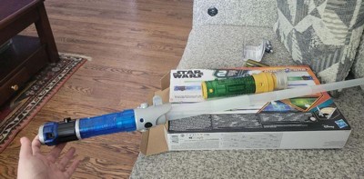 [This review was collected as part of a promotion.] My 7 year old loves Star Wars so this lightsaber was the perfect gift for him. Assembling the Luke Skywalker lightsaber was super simple. You will need 2 AAA batteries that are not included for the light and sound feature. There are two different color options included which is super cool. Switching between the blue and the green color is easy. Both the green and the blue lights illuminate extremely well. My little one loves the sounds and thinks they are super cool. It is easy to flick open the lightsaber to fully extend it. The lightsaber is a great size, I was surprised with how large it is. Collapsing the lightsaber is just as simple and makes it easier to store. My little one has been playing with this lightsaber daily and has so much fun. I love watching him use his imagination and have creative play time. He has a great time pretending to duel. My little one has played rough with this lightsaber but it has helped up great! The quality is impressive! He has asked for more of this lightsabers to add to his collection. If you have a Star Wars fan, I highly recommend this lightsaber by Hasbro.