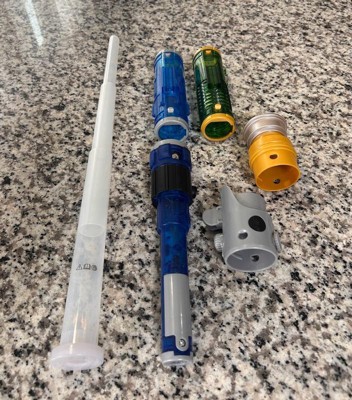 - CREATE THEIR OWN LIGHTSABER: This customizable electronic Star Wars toy comes with 6 parts -- an extendable blade, 2 interchangeable caps, 2 covers, and 1 core