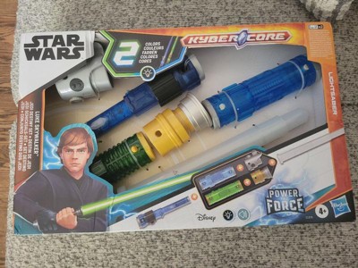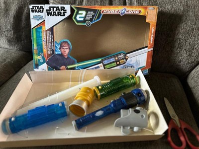 Kids can imagine out-of-this world adventures with the Star Wars Lightsaber Forge Luke Skywalker Jedi Destiny Lightsaber Set. Decide between a glowing blue or green blade with this Lightsaber Forge Lightsaber, inspired by Luke Skywalker. This kids Lightsaber features entertainment-inspired design, an extendable light-up blade that flicks open, and sound effects inspired by the Star Wars galaxy. Plus, Lightsaber Forge electronic Lightsabers now feature glowing translucent cores inspired by kyber crystals, which are found in every Lightsaber. Use the included blade, 2 interchangeable caps, 2 covers, and core to create either a green or blue Lightsaber! Pieces are compatible across the entire Lightsaber Forge line, and the purchase of just one additional Lightsaber Forge Lightsaber unlocks 16 total combinations! (Sold separately. Subject to availability.) This Lightsaber toy makes a great Star Wars gift for boys and girls, and it's the perfect addition to Star Wars costumes for kids. Star Wars products are produced by Hasbro under license from Lucasfilm Ltd. HASBRO and all related trademarks and logos are trademarks of Hasbro, Inc.