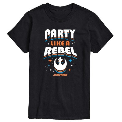 Star Wars - Party Like A Rebel - Men's Short Sleeve Tee - Embark on an epic adventure with our officially licensed Star Wars graphic apparel collection! Celebrate the legendary saga with bold, iconic designs featuring your favorite characters, ships, and moments from a galaxy far, far away. Whether it's the fearless Luke Skywalker, the powerful Darth Vader, the wise Yoda, or the unforgettable Millennium Falcon, each piece captures the magic and excitement of the Star Wars universe. From graphic tees and hoodies to sweatshirts, this collection combines comfort with striking artwork that showcases the timeless appeal of the Star Wars story.