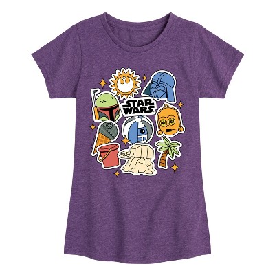 Star Wars - Darth Vader, C3 po, R2D2 Summer - Toddler And Youth Girls Fitted Short Sleeve Tee - Embark on an epic adventure with our officially licensed Star Wars graphic apparel collection! Celebrate the legendary saga with bold, iconic designs featuring your favorite characters, ships, and moments from a galaxy far, far away. Whether it's the fearless Luke Skywalker, the powerful Darth Vader, the wise Yoda, or the unforgettable Millennium Falcon, each piece captures the magic and excitement of the Star Wars universe. From graphic tees and hoodies to sweatshirts, this collection combines comfort with striking artwork that showcases the timeless appeal of the Star Wars story.
