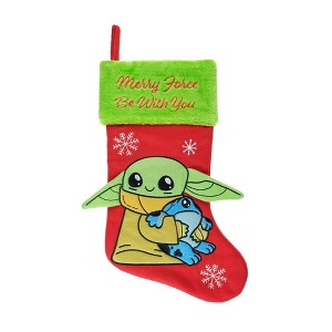 Decorate your home with this beautiful Christmas stocking featuring The Child form Star Wars. Beautiful applique and embroidered materials in bright vibrant colors. A must have for Star Wars fans. Stocking is made of polyester. 20" size is perfect for stuffing with lots of small stuffers. High quality materials and construction.
