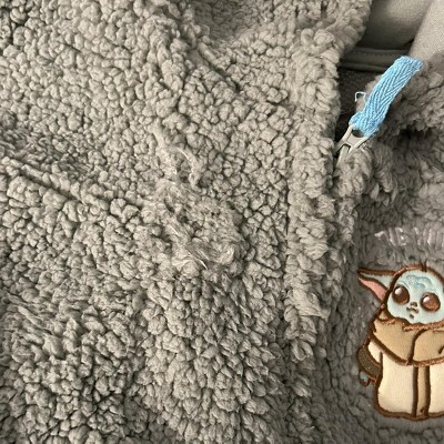 Join Grogu and the Mandalorian on their adventures in a galaxy far, far away in this cool and comfy Star Wars zip-up hoodie! This stylish long sleeve hooded sweatshirt features cute cosplay 3D ears on the hood and cool embroidered artwork of Grogu a.k.a. The Child, who looks like an adorable Baby Yoda! Made of a soft Faux Sherling material that keeps your little Jedi comfortable all day long, this fashionable Mandalorian hoodie is part of the perfect outfit for your Star Wars fan!
