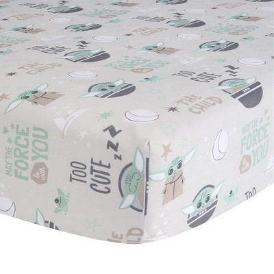 NoJo Star Wars The Mandalorian Grogu, White, Green, and Blue Precious Cargo Photo Op Nursery Fitted Crib Sheet