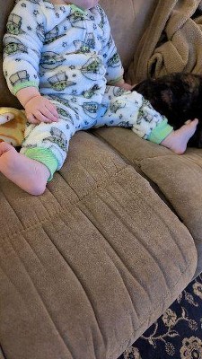 • Zip up front for easy dressing; Safety neck tab for zipper pull; Comfy footies for extra comfort and warmth