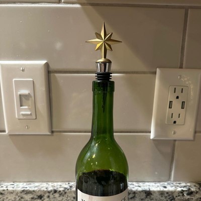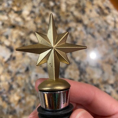 Make your wine look more appealing and keep it fresh after opening with this Star Wine Stopper from Threshold™. Made of metal, this wine stopper features an 8-pointed star in a gold finish for seasonal charm. Plus, it comes with sealing rings to fit the stopper to the bottle easily, helping prevent leaks and spillage and keep the wine fresh for longer.