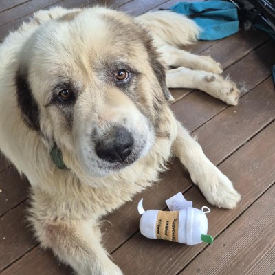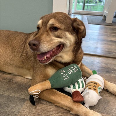 [This review was collected as part of a promotion.] Even my pup wants an afternoon latte! How stinking cute is this stuffed toy. I bought this for my 10 year old golden retriever who loves stuffed squeaker toys. This was the size large and it is perfect for him because he’s 95lbs so a bigger dog who needs bigger toys. The design is so cute, and the material is thick and great quality. He tears toys up pretty quick and it’s still around the house! Now we can drink coffee together! I received an incentive to write this review.