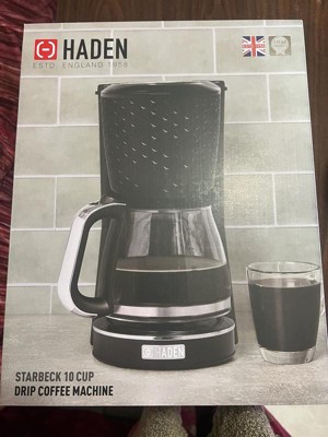 Starbeck 10c Drip Coffee Maker Black and Chrome: Haden, 10 Cup Capacity, Electric, BPA-Free, Cone Filter, Hand Wash