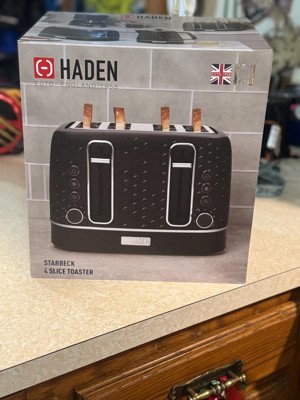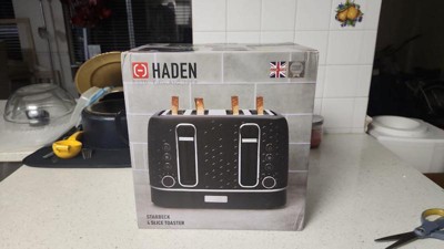 Starbeck 4 Slice Wide Slot Toaster Black: Haden, 1600W, BPA-Free, Plastic, 1-Year Warranty, Spot Clean, 8.25" H x 11.75" W x 11" D