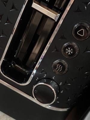 [This review was collected as part of a promotion.] I never thought I would say a toaster is pretty but this is so aesthetically pleasing to look at! The toaster has wider slots to accompdate bagels or thicker toast. I’m really enjoying the buttons, which are Cancel, defrost, and reheat. The reheat option is a game changer for me and my family. Anything I’ve toasted has been evenly toasted to perfection. This is definitely perfect for my large family!
