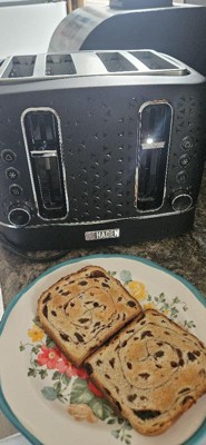 [This review was collected as part of a promotion.] I received the Haden Starbeck 4 Slice Wide Slot Stainless Steel Black & Chrome Toaster for my honest review from Influenster. Toaster is very well made sturdy, and easy to clean. Read directions before use. Takes a while to get the right setting. Great for waffles, bagels and toast.