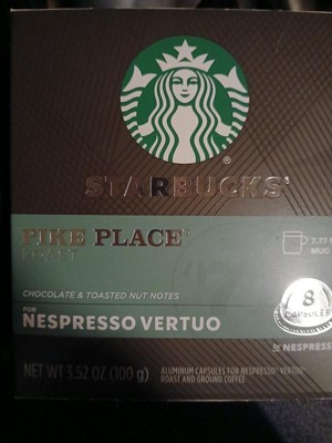 - STARBUCKS BY NESPRESSO PODS: Enjoy the Starbucks coffee you know and love with this 8-count box of Starbucks Pike Place Roast capsules for Nespresso Vertuo Machines