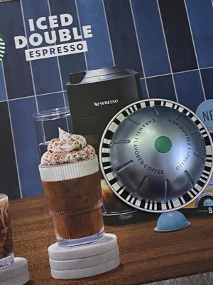 - STARBUCKS BY NESPRESSO PODS: Enjoy the Starbucks coffee you know and love with this 8-count box of Starbucks Iced Double Espresso Caramel capsules for Nespresso Vertuo machines