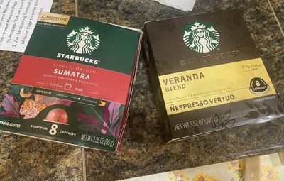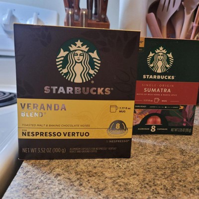 - STARBUCKS BY NESPRESSO PODS: Enjoy the Starbucks coffee you know and love with these four 8-count boxes of Starbucks Single-Origin Sumatra capsules for Nespresso Vertuo Machines—32 capsules total