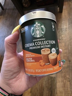 - PREMIUM INSTANT COFFEE: Indulge your senses with the frothy texture of Starbucks Crema Collection Premium Instant Salted Caramel—crafted with the same high-quality 100% arabica beans we brew in our cafés; makes up to 14 cups when prepared as directed