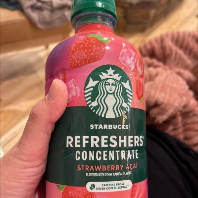 Elevate your refreshment ritual with Starbucks Strawberry Acai Refreshers Concentrate, made with real fruit juice (18% juice). Crafted with layers of bold, fruit-forward flavor and a gentle lift from green coffee extract, this fruity drink offers a balanced boost that's as vibrant as it is versatile. Mix into sparkling water, lemonade, or coconut milk (re-create pink drink ). Anytime you're in the mood for an afternoon pick-me-up, or sharing a refreshing drink with friends, this versatile concentrate makes it easy to enjoy vibrant cold drinks.