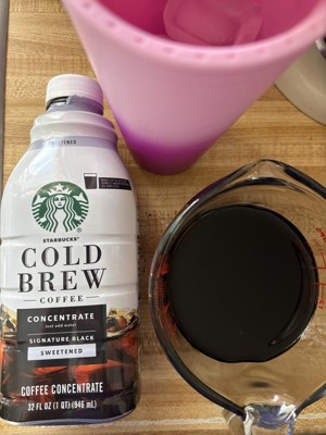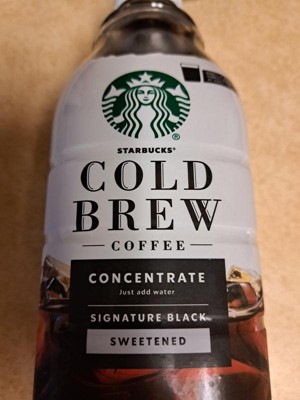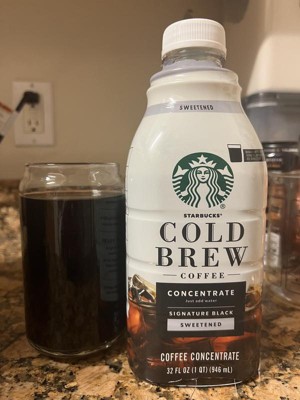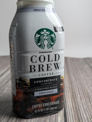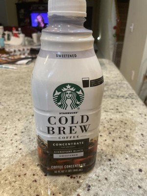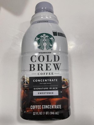 - PREMIUM COLD BREW COFFEE: Enjoy the Starbucks cold brew coffee you love at home with this 32-fluid ounce bottle of Starbucks Cold Brew Concentrate Sweetened Signature Black