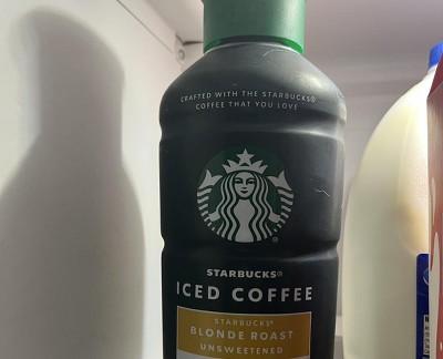 Starbucks Blonde Roast Unsweetened Black Iced Bottled Coffee Drink, Enjoy your favorite chilled coffee drink on the go thanks to Starbucks bottled coffee drinks. All made with real Starbucks coffee, you can enjoy the flavor of your favorite café drinks at home and on the go. The perfect late afternoon pick-me-up, this delicious cold coffee treat is great straight from the bottle or enjoyed over ice. Includes 1 (48 oz) bottle of Starbucks Unsweetened Blonde Roast Iced Coffee. Perfect to take on-the-go or for your next coffee break at work or school<