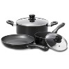 - Includes 1.45 qt. saucepan, 4.8 qt. Dutch oven, 9.5 in. deep fry pan and 2 tempered glass lids