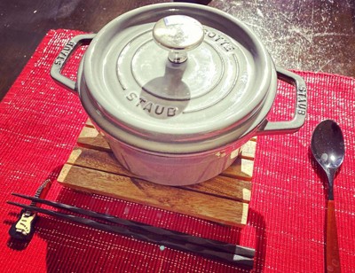 The Staub cocotte is unsurpassed for slow-cooking meats and vegetables to tender perfection, and for simmering hearty stews and soups. Cast iron possesses exceptional heat-retaining qualities, so the pot heats evenly throughout. The innovative lid features tiny spikes on the interior that continually release condensed liquid back onto the food, yielding moist, flavorful results.Staub's special matte black enamel interior and self-basting spiked lid guarantee perfect browning and braising for flavor-enhanced food. With their exquisite enamel finish, each piece transitions beautifully from the kitchen to the table. From comfort food to sumptuous suppers, every dish is special when served in Staub.Staub enameled cast iron cookware is the choice of the world's best chefs. With exceptional durability, it is perfect for day-to-day use in both gourmet home kitchens and prestigious restaurants around the world. Built to last a lifetime, these heirloom pieces can be passed from generation to generation.