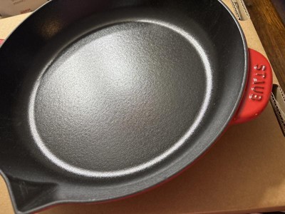 STAUB fry pans are perfect for prepping meals every day of the week. Optimized for high heat cooking, this 10-inch pan is ideal for searing meat, frying bacon, and caramelizing carrots. The enameled cast iron interior has exceptional heat-retention qualities, so the pan heats evenly throughout and the side pouring spouts offer easy grease removal. When it’s time to serve, you can bring this attractive pan straight to the table.Rooted in French culinary heritage, STAUB cookware is beloved by professional and home chefs for its exquisite craftsmanship, exceptional performance, and timeless beauty. Each piece of STAUB cookware effortlessly and elegantly transitions from the oven to the table - you can cook and serve in the same dish. These heirloom pieces can be lovingly passed from generation to generation.