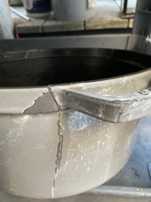 Hi, our cocotte cracked, was very sad. Hoping you guys have a warranty. I did drop it from like 2 ft when getting it out of cover