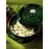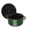 The Staub cocotte is unsurpassed for slow-cooking meats and vegetables to tender perfection, and for simmering hearty stews and soups. Cast iron possesses exceptional heat-retaining qualities, so the pot heats evenly throughout. The innovative lid features tiny spikes on the interior that continually release condensed liquid back onto the food, yielding moist, flavorful results.Staub's special matte black enamel interior and self-basting spiked lid guarantee perfect browning and braising for flavor-enhanced food. With their exquisite enamel finish, each piece transitions beautifully from the kitchen to the table. From comfort food to sumptuous suppers, every dish is special when served in Staub.Staub enameled cast iron cookware is the choice of the world's best chefs. With exceptional durability, it is perfect for day-to-day use in both gourmet home kitchens and prestigious restaurants around the world. Built to last a lifetime, these heirloom pieces can be passed from generation to generation.