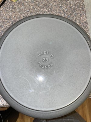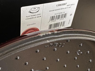 This pan/braiser is beautiful and useful for many of our recipes. I keep it on the stove along with the matching Staub tea kettle. I purchased this pan at a discount due to "Visual Imperfections" but I am not able to find any flaws with the pan.