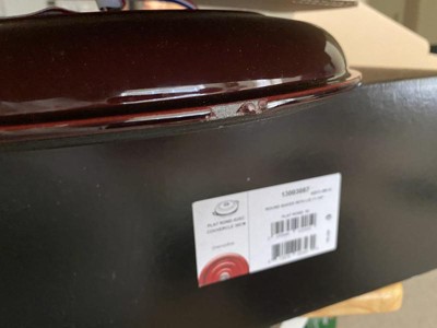 Ordered 25JAN21, finally after sending the fourth damaged and chipped up braisers back I received a fifth perfect unit on 05OCT21. Its not UPS, the blame falls on the engineer who designed a box where the lid and base aren't properly isolated. I'm sorry but all future purchases will be in a store so I can do a full chip inspection. I have to say it is BEAUTIFUL. Sorry the 8 months and 4 returns caused the low rating.