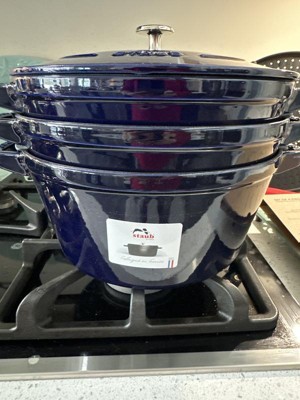 The Staub Cast Irons are AMAZING! I have multiple pieces and love everyone of them, and the Dark Blue is such a beautiful color.