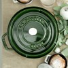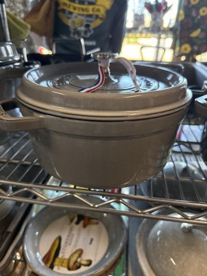 The Staub cocotte is unsurpassed for slow-cooking meats and vegetables to tender perfection, and for simmering hearty stews and soups. Cast iron possesses exceptional heat-retaining qualities, so the pot heats evenly throughout. The innovative lid features tiny spikes on the interior that continually release condensed liquid back onto the food, yielding moist, flavorful results.Staub's special matte black enamel interior and self-basting spiked lid guarantee perfect browning and braising for flavor-enhanced food. With their exquisite enamel finish, each piece transitions beautifully from the kitchen to the table. From comfort food to sumptuous suppers, every dish is special when served in Staub.Staub enameled cast iron cookware is the choice of the world's best chefs. With exceptional durability, it is perfect for day-to-day use in both gourmet home kitchens and prestigious restaurants around the world. Built to last a lifetime, these heirloom pieces can be passed from generation to generation.