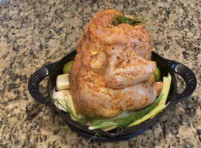 Creative idea for roasting a chicken. Great quality and the chicken always roasts evenly and is delicous and moist.