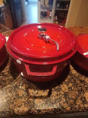 The Staub cocotte is unsurpassed for slow-cooking meats and vegetables to tender perfection, and for simmering hearty stews and soups. Cast iron possesses exceptional heat-retaining qualities, so the pot heats evenly throughout. The innovative lid features tiny spikes on the interior that continually release condensed liquid back onto the food, yielding moist, flavorful results.Staub's special matte black enamel interior and self-basting spiked lid guarantee perfect browning and braising for flavor-enhanced food. With their exquisite enamel finish, each piece transitions beautifully from the kitchen to the table. From comfort food to sumptuous suppers, every dish is special when served in Staub.Staub enameled cast iron cookware is the choice of the world's best chefs. With exceptional durability, it is perfect for day-to-day use in both gourmet home kitchens and prestigious restaurants around the world. Built to last a lifetime, these heirloom pieces can be passed from generation to generation.