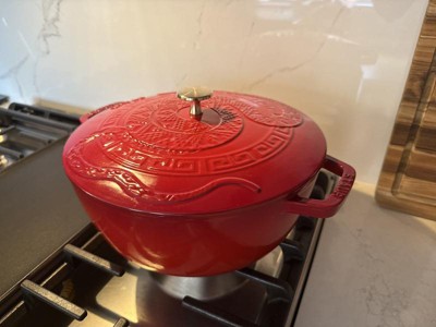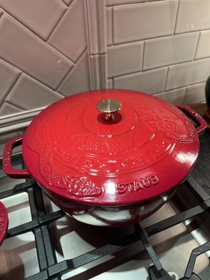 Staub Cast Iron Essential French Oven, Dutch Oven, 5-quart, serves 5-6, Made in France, with Snake Lid - Cherry