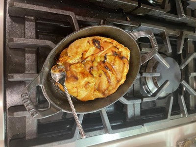 This Staub Baking dish is a perfect serving dish for casseroles & gratin potato's. The Graphite cast iron is good for browning and heating evenly.