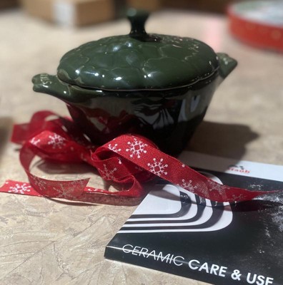 Rooted in French culinary heritage, Staub is beloved by professional and home chefs for its exquisite craftsmanship, exceptional performance, and timeless beauty.With its gorgeous Basil porcelain enamel finish and intricate artichoke design, the Staub 16 ounce Petite Artichoke Cocotte is a delightful addition to your spring table. Serve up warm dips, cool salsas, and savory spreads in style.Easily bake and serve gooey artichoke dip in the same dish - this charming ceramic bakeware doubles as a pretty presentation piece. Ceramic evenly distributes heat for perfectly cooked dishes. Plus, the porcelain enamel glaze prevents absorption of moisture during baking, so foods won't dry out.This adorable artichoke effortlessly and elegantly transitions from the oven to the table. It makes a memorable gift for veggie-lovers, farmer's market-goers, and home gardeners.