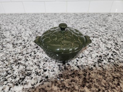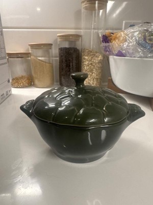 [This review was collected as part of a promotion.] I love that this cocotte has a lid. I purchased the pumpkin one in the past so getting the artichoke one was a must for soup season.