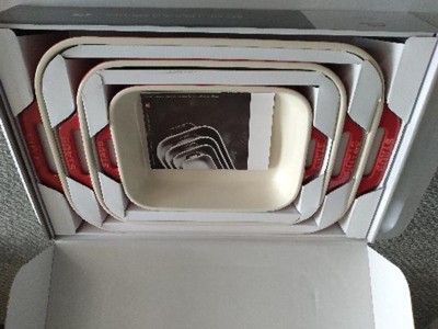 Just received this set as a gift and I am very happy with it so far! The baking dishes are deep and just what I was looking for in order to cook casseroles and lasagna. I got light blue, and it is so beautiful - I think brownies will look just lovely. It is well-made and I look forward to serving others with this set.
