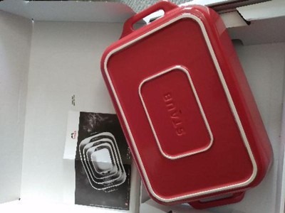 A nesting set for all your bakeware needsThis set features three nestable rectangular ceramic baking dishes in three handy sizes. They are perfect for lasagna, casseroles, and desserts, as well as roasted meats and vegetables. Cook for a crowd in the roomy 13 by 9-inch dish, bake a one-dish family meal in the 10.5 by 7.5-inch dish, or bake a sumptuous side in the 7.5 by 6-inch dish. Then serve directly to the table in these elegant dishes.The beautiful porcelain enamel glaze prevents moisture absorption during baking, so baked goods won't dry out, and it diffuses heat gently and retains heat exceptionally well. Oven and broiler safe up to 572°F, ceramics can also be used in the microwave and are dishwasher safe. Highly scratch and impact resistant, STAUB ceramics are conveniently freezer safe.