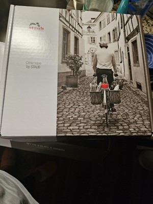 I can't believe I found this on Target for such a great price. I love the colour and the size is just perfect as I am rarely cooking for more than 2 people. The packaging is fantastic and it gives the first clue that you've bought a high end product. I'm almost thinking I don't want to use it as it looks so pretty. I love the inside box that it comes in; I will store it in there in between uses. Staub is a fantastic product and did I mention how great the price is! Directions say it is Microwave, Oven, and Broiler safe but you can't put it directly on to a heat source such as stove top