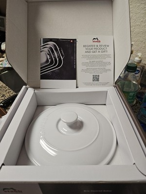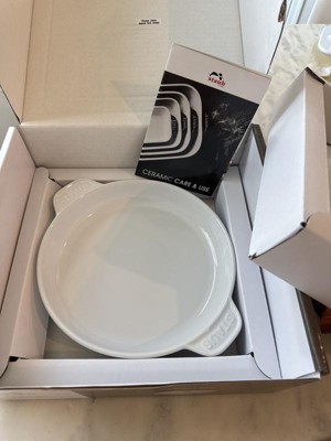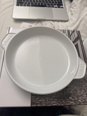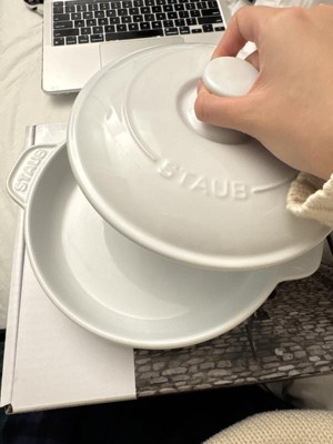 A classic French shape for perfectly baked cheeseRooted in French culinary heritage, Staub’s ceramic line offers the same elegance, performance, and durability as their renowned cast iron cookware.Introducing our Brie Baker, a classic shape especially designed for heating cheese in the oven. The set features an 8-inch round plate with large handles for easy maneuvering. Available in a beautiful glossy white glass porcelain finish, this ceramic baker is both functional and elegant. You can bake, store, and then serve right to the table in this dish. Its durable finish is also highly resistant to scratches and staining.STAUB ceramics are fired twice at a very high temperature, making them extremely resistant to impact and thermal shock. They easily transition from freezer to oven to microwave to table. Their chic, classic design lets you serve up your dishes in style.Ceramic distributes heat evenly throughout the Brie Baker for perfectly baked brie. The porcelain enamel glaze prevents absorption of moisture during baking, so cheese won’t dry out.