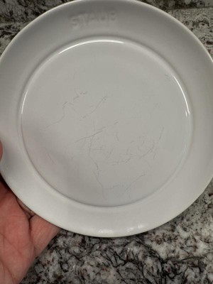 Thank you for your review and for sharing your feedback. We are sorry to hear about your experience with our Staub Dinnerware. Silverware markings are part of normal use, we know that's a bummer when it happens, however, a mild abrasive mixture like Baking Soda and water with a cloth and some elbow grease will help to remove them. At Zwilling we appreciate all reviews as this helps us to improve, we will certainly forward your feedback to the appropriate brand management team. If you have any questions, please visit our Support Service Center. Here is our website link: https://www.zwilling.com/us/magazine/support-center.html Our representatives are available to assist you in any way possible.
