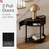Stead Fluted Half Moon Console Table - Solid Wood Entryway Table with Two Doors and Brass Knobs (Black)